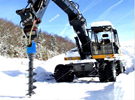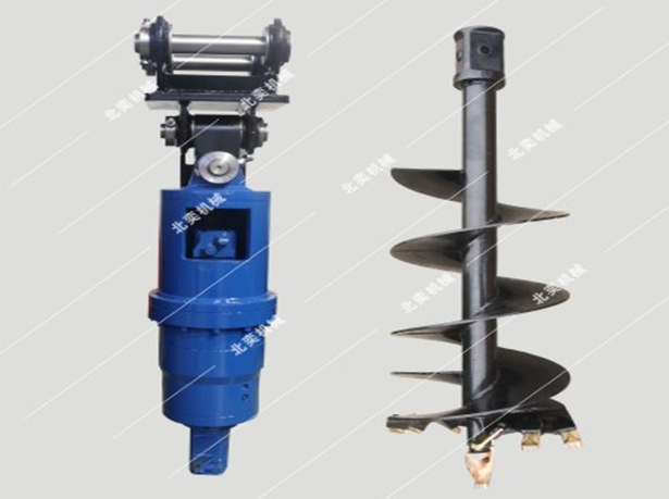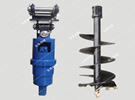 螺旋鉆機是一種螺旋葉片鉆孔機,包括鉆機框架,框架上設有滑道,還設有可沿滑道上下滑動的減速箱,減速箱接動力輸入軸和動力輸出軸,動力輸入軸的另一端接液壓馬達,動力輸出軸的另一端接鉆桿,鉆桿的下端接鉆頭。