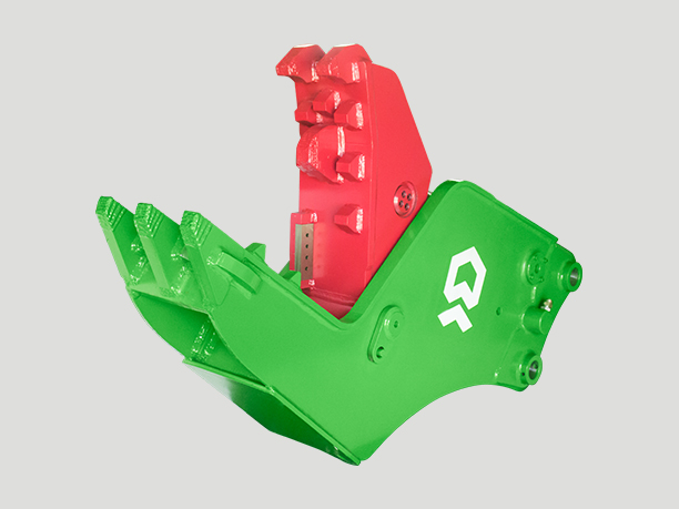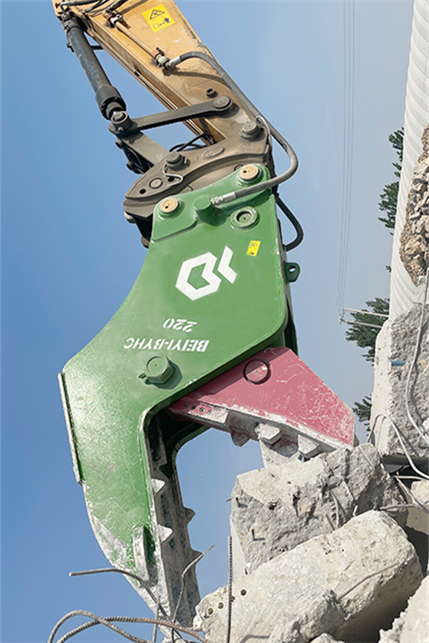 鷹嘴剪,別名液壓剪,屬于挖掘機拆樓屬具,安裝于挖掘機前端。因其酷似鷹的嘴巴而得名,能精準快速抓取解體目標。刀口設計有夾槽,鉗夾力強勁,便于夾緊不規則物料時行任意角度互換設計。